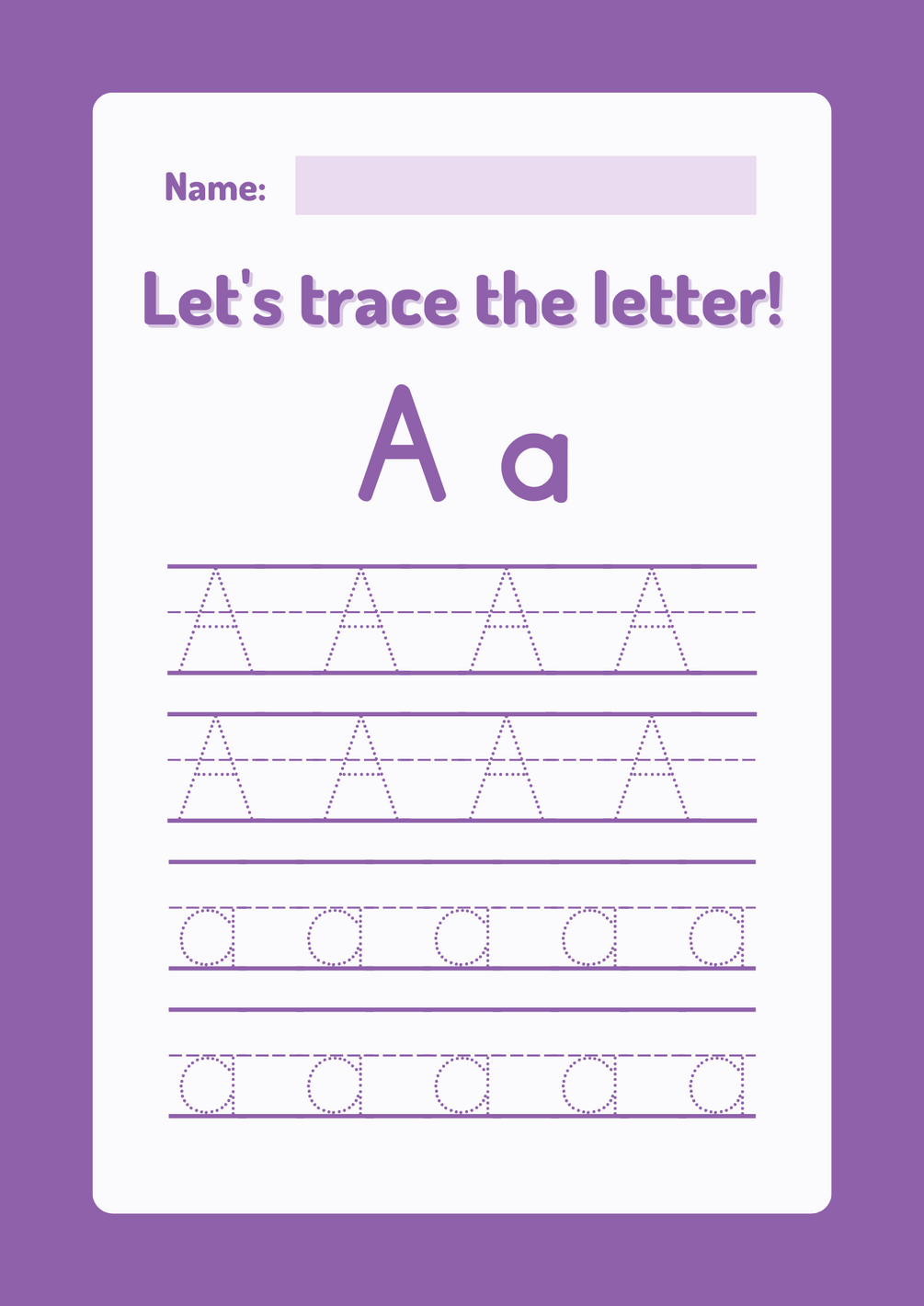 Royal Purple Minimalist Monogram Trace The Letter Worksheet (Set of 26 Pages)
